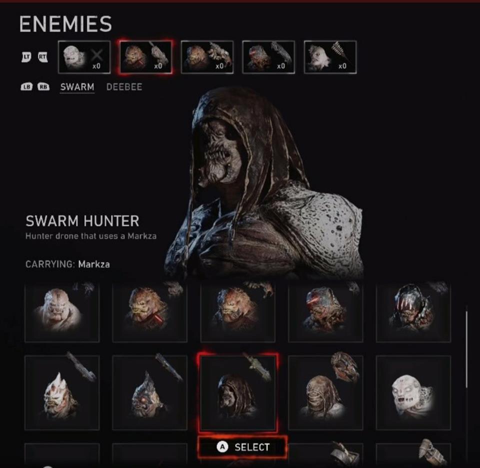 Parece que eles inovaram bastante na aparência dos Swarms, dando um tom mais diversificado e abandonando aquela monotonia que foi no Gears 4. O Swarm Franco-Atirador, Granadeiro e o Granadeiro de Elite, aparentemente estão usando “sucata de armamento” para formarem suas armaduras.